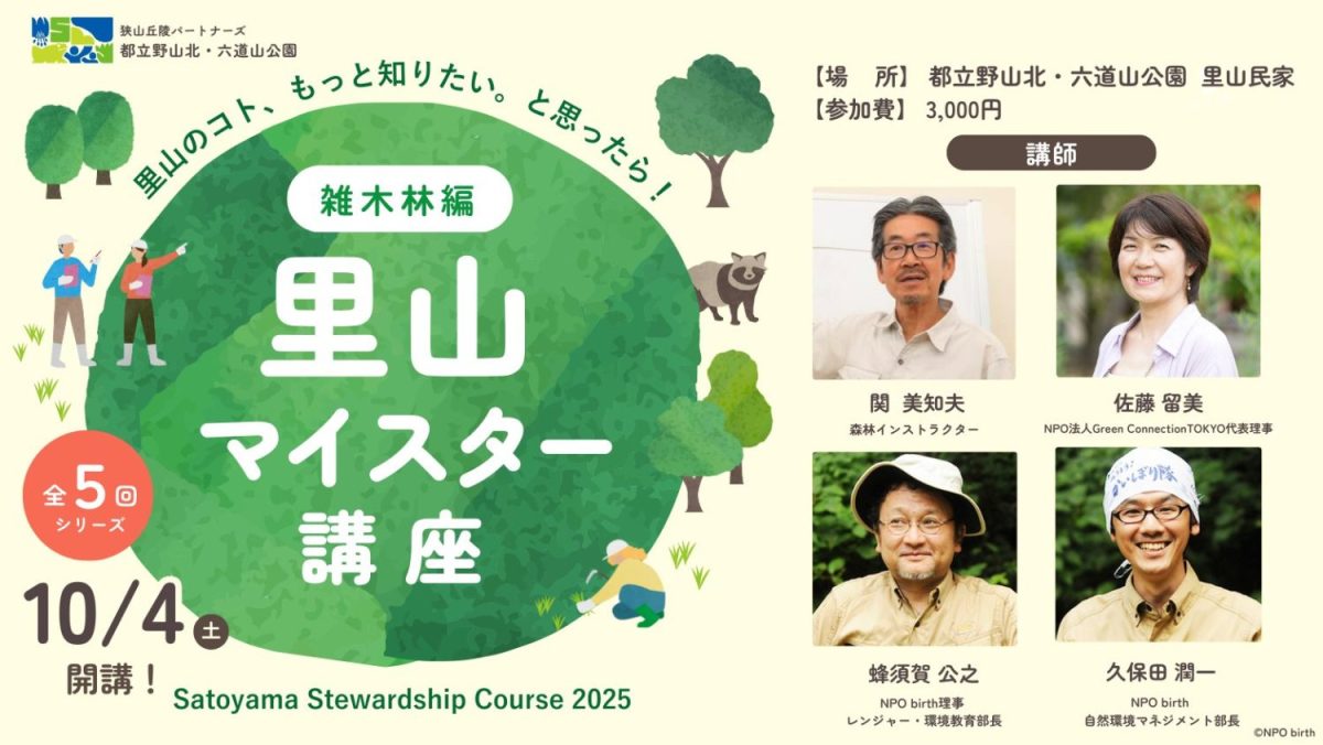 NPO birthの名物講座が豪華講師陣で復活。東京の里山を通して、自然を守る知識とスキル、そして仲間に出会えるチャンスです。里山や自然に興味がある方はぜひ!先着順なのでお申し込みはお早めに!