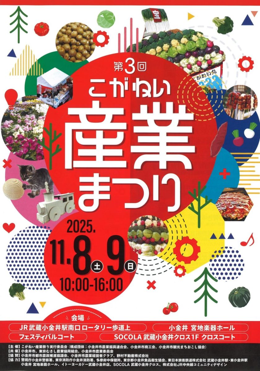 小金井市の地元の逸品や農畜産物の紹介・販売を通して、事業者と来場者の交流を図り、市の魅力を市内外に発信することを目的に行われるお祭り。市内の飲食・モノづくり事業者の逸品販売や、市内で生産された農産物(野菜・果樹・植木等)の品評会や即売会、市内で活動するパフォーマーによるステージなども。